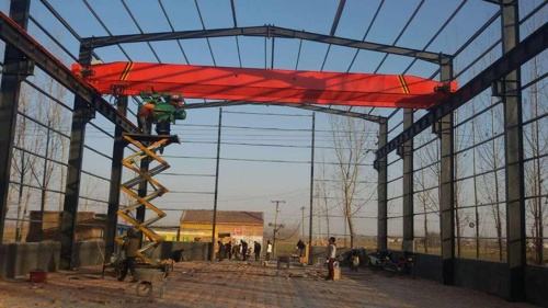橋式起重機(jī)是橫架于車間、倉(cāng)庫(kù)和料場(chǎng)上空進(jìn)行物料吊運(yùn)的起重設(shè)備。由于它的兩端坐落在高大的水泥柱或者金屬支架上,形狀似橋。橋式起重機(jī)的橋架沿鋪設(shè)在兩側(cè)高架上的軌道縱向運(yùn)行,可以充分利用橋架下面的空間吊運(yùn)物料,不受地面設(shè)備的阻礙。它是使用范圍最廣、數(shù)量最多的一種起重機(jī)械。
