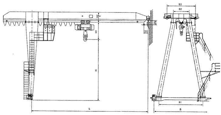電動葫蘆半門式起重機結(jié)構(gòu)簡圖: