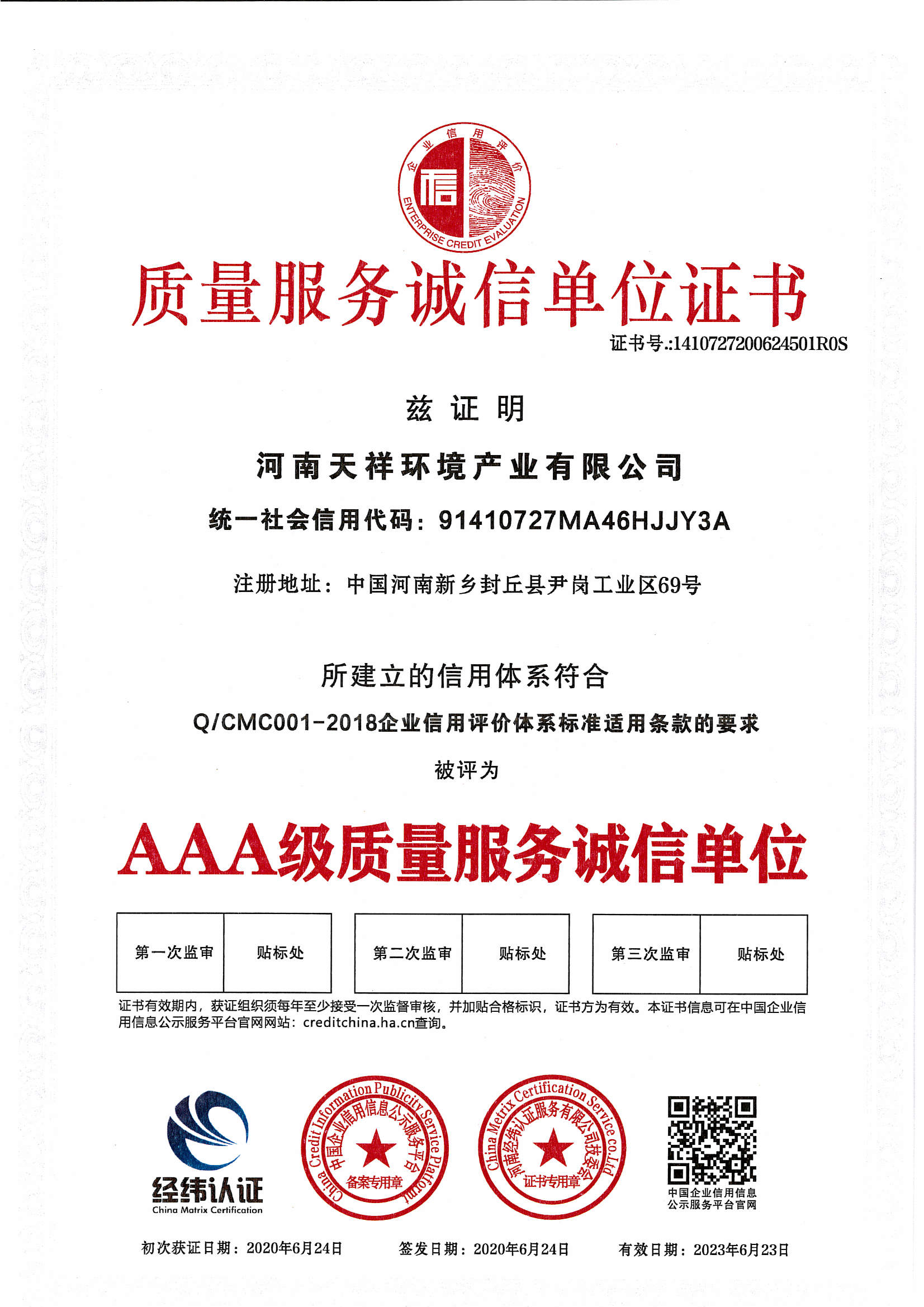 發(fā)證機(jī)構(gòu): | 第三方信用評級機(jī)構(gòu) | 發(fā)證時間 : | 2020-06-24 |