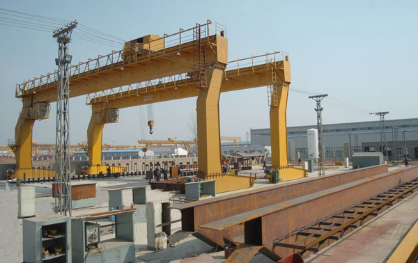 門(mén)式起重機(jī)是橋式起重機(jī)的一種變形,又叫龍門(mén)吊。主要用于室外的貨場(chǎng)、料場(chǎng)貨、散貨的裝卸作業(yè)。門(mén)式起重機(jī)具有場(chǎng)地利用率高、作業(yè)范圍大、適應(yīng)面廣、通用性強(qiáng)等特點(diǎn),在港口貨場(chǎng)得到廣泛使用。