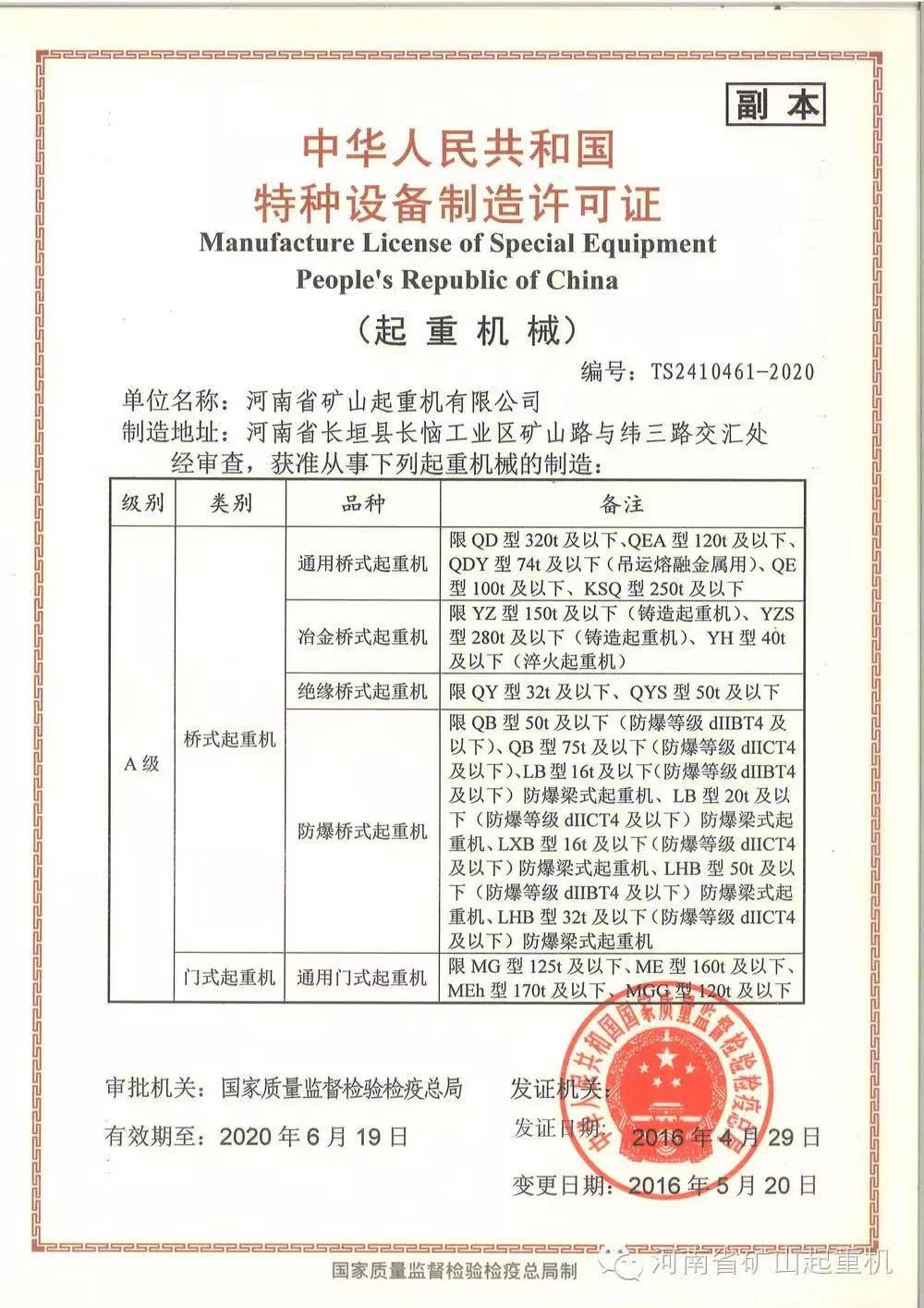 公司介紹 中華人民共和國特種設(shè)備制造許可證