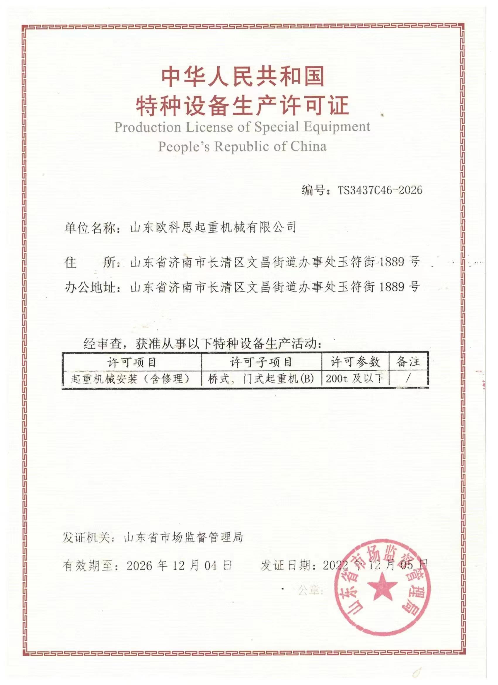 發(fā)證機(jī)構(gòu): | 山東省市場(chǎng)監(jiān)督管理局 | 發(fā)證時(shí)間 : | 2022-12-05 |