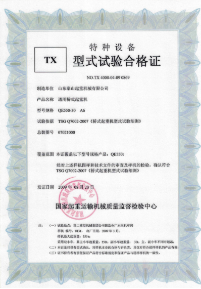 發(fā)證機(jī)構(gòu): | 國家起重運輸機(jī)械質(zhì)量監(jiān)督檢驗中心 | 發(fā)證時間 : | 2009-08-20 |