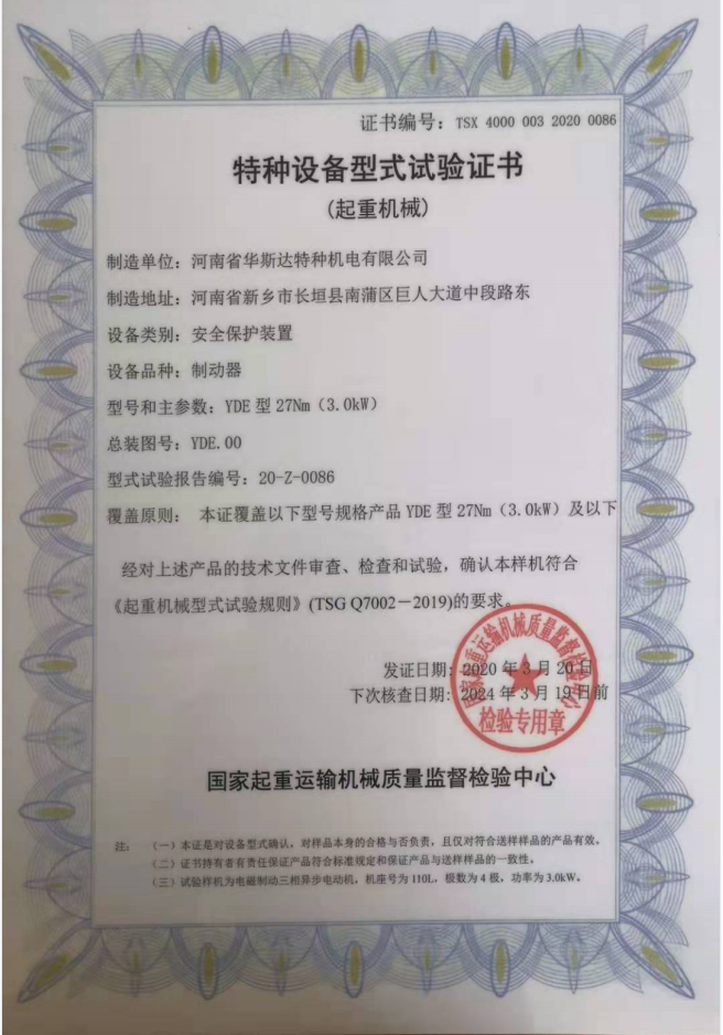發(fā)證機(jī)構(gòu): | 國(guó)家起重運(yùn)輸機(jī)械質(zhì)量監(jiān)督檢驗(yàn)中心 | 發(fā)證時(shí)間 : | 2020-03-20 |