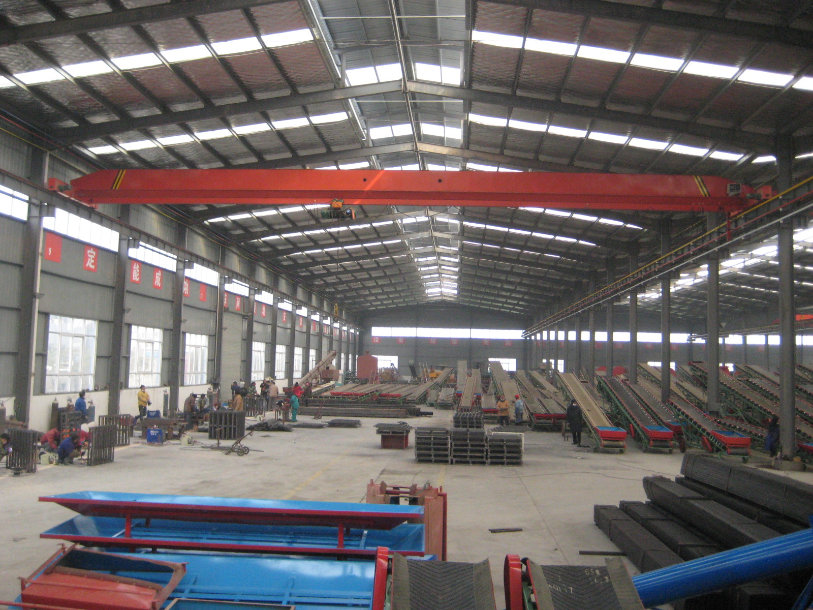 公司主要產品有單、雙梁、橋、門式起重機、變頻起重機、電磁、抓斗、冶金、防爆起重機、水利啟閉機、旋臂起重機、電動葫蘆及配件等。產品廣泛應用于港口、碼頭、機械、冶金、礦山、電力、鐵路、水利、汽車、造紙、化工等行業(yè)。公司完善的質量保證體系、嚴格的管理機制,強大的生產能力,先進的檢測手段,及時的售后服務,深得國內外用戶的信賴,產品供不應求,暢銷全國三十多個?。ㄊ校?、自治區(qū),并遠銷俄羅斯、馬來西亞、東南亞、非洲等國家和地區(qū)。