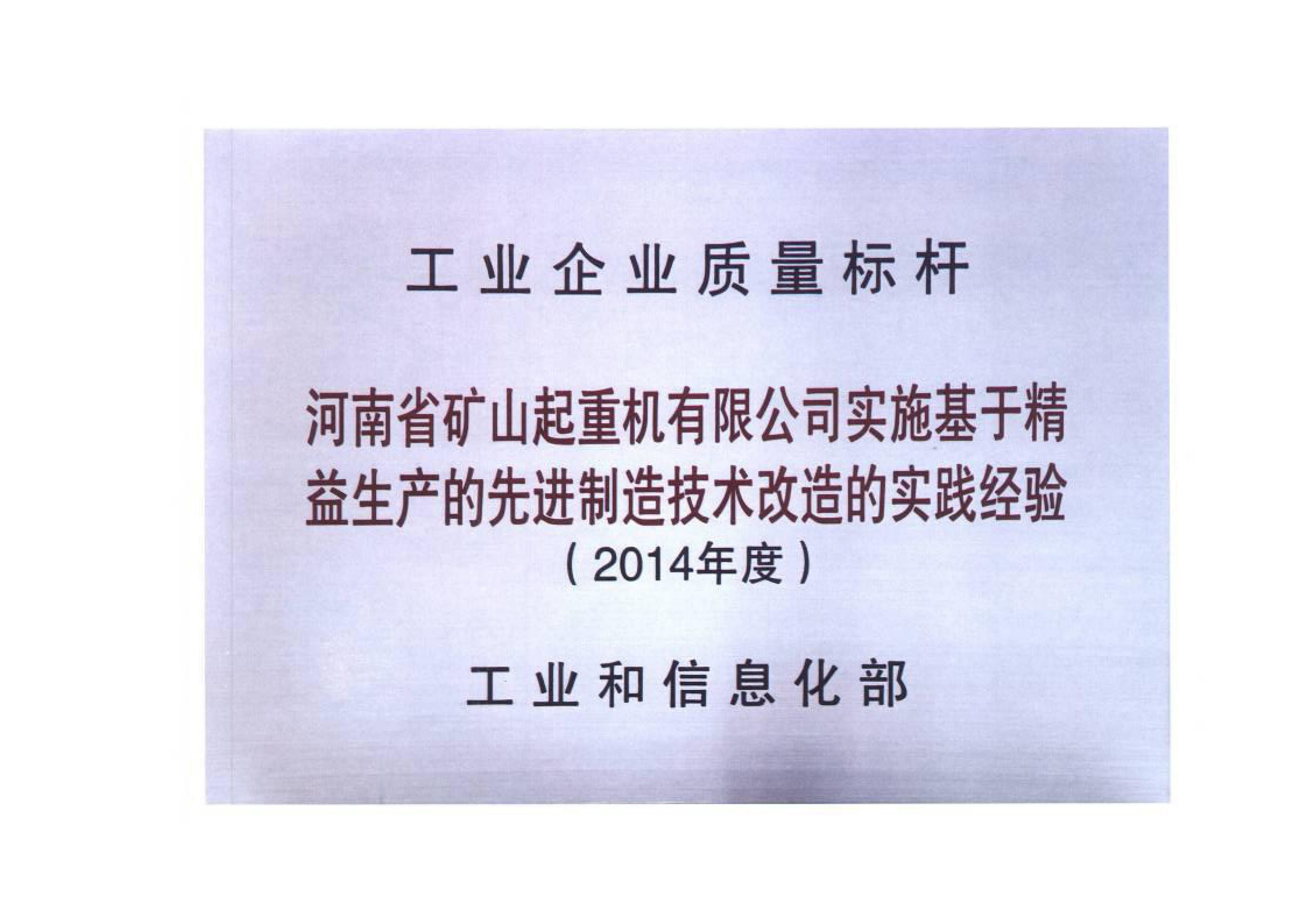 證書介紹 工業(yè)企業(yè)質(zhì)量標(biāo)桿