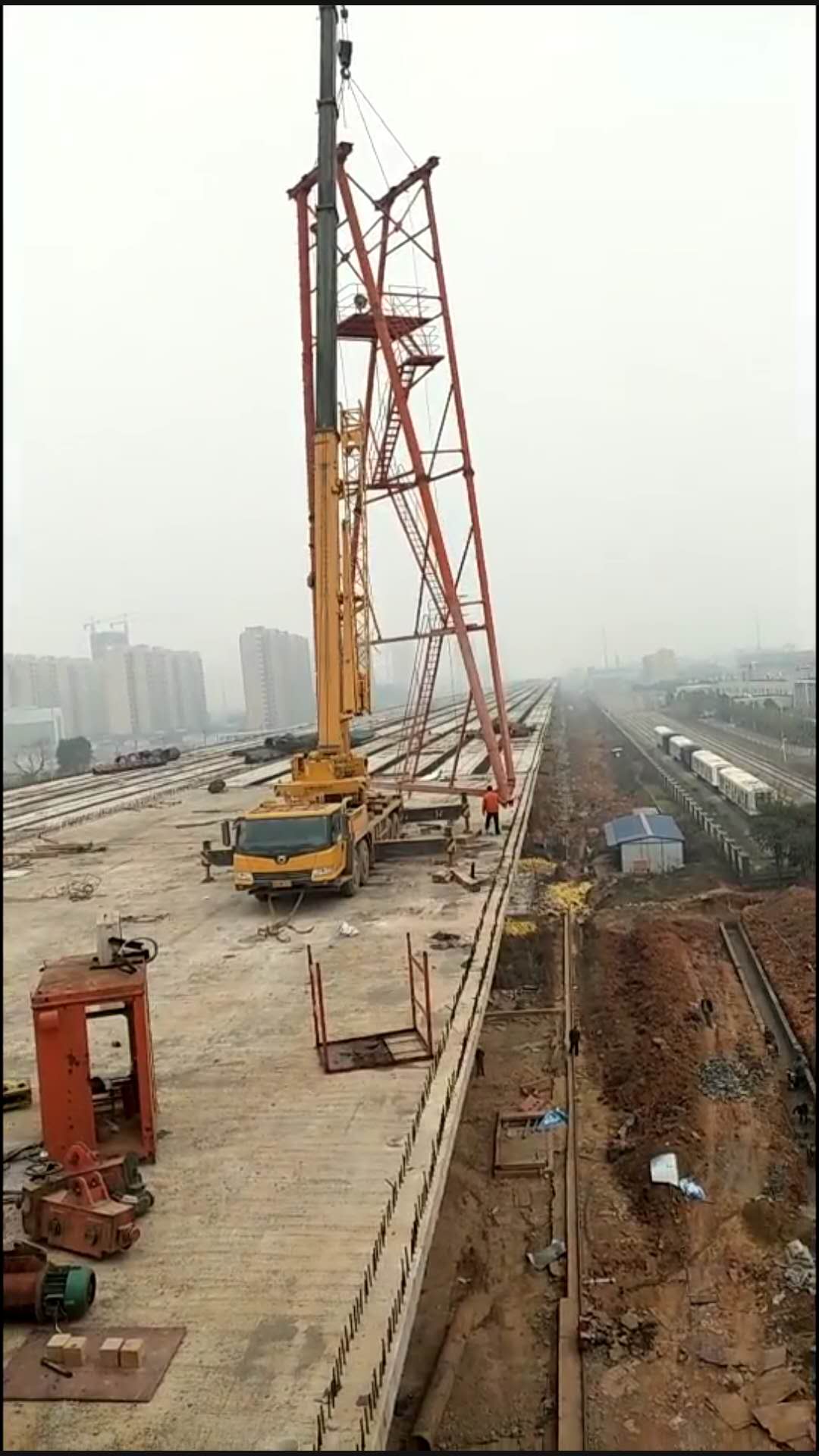 ![]() ![]() ![]() ![]() ![]() ![]() 80噸-42米起升高度24米提梁機2臺 60噸-42米起升高度24米提梁機2臺 正在有序拆除施工中,所配備專業(yè)施工人員16人,汽車吊100噸和70噸各1臺 |