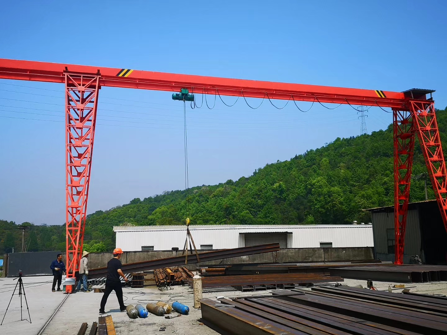 MH型花架式單梁門式起重機(jī)是中小型帶懸臂簡易龍門起重機(jī),電動葫蘆采用CD1和MD1型兩種,主梁是工字鋼和鋼板的組合梁,大車運(yùn)行機(jī)構(gòu)主要由電動機(jī)、制動器、減速機(jī)、車輪等組成,其結(jié)構(gòu)簡單、安裝、使用、維修方便。該機(jī)適合用于工廠、鐵路貨場、港口碼頭、水電站等地:該機(jī)工作級別為A5級,操作方式地面和操作室操作,可有可無用戶自行選擇。