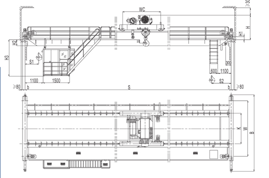 (2)、該產(chǎn)品主要適用于機械加工車間、冶金廠輔助車間、倉庫、料場、電站等的轉(zhuǎn)運、裝配、檢修和裝卸作業(yè)。它也可以代替普通雙梁橋式起重機,用于輕紡工業(yè)和食品工業(yè)的生產(chǎn)車間。