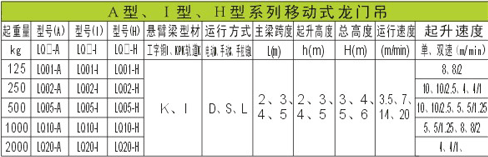 A型、I型、H型系列移動(dòng)式龍門吊技術(shù)參數(shù)