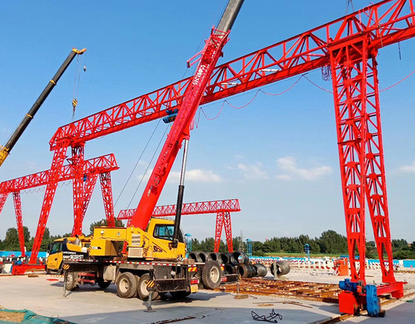 - 被應(yīng)用的場景不同:橋式起重機的橋架沿鋪設(shè)在兩側(cè)高架上的軌道縱向運行,可以充分利用橋架下面的空間吊運物料,不受地面設(shè)備的阻礙。使用范圍較廣、數(shù)量較多的一種起重機械,在車間、倉庫等室內(nèi)更為常見。而門式起重機具有場地利用率高、作業(yè)范圍大、適應(yīng)面廣、通用性強等特點,在港口貨場得到廣泛使用。