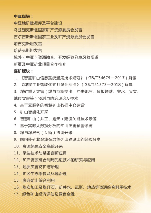 論壇將邀請(qǐng)相關(guān)院士,國(guó)家發(fā)改委、工信部、自然資源部,自治區(qū)相關(guān)部門及專家學(xué)者等發(fā)表演講,內(nèi)容包括綠色礦山建設(shè)及智慧礦山、地質(zhì)勘查與資源開發(fā)、絲路礦業(yè)合作及項(xiàng)目推介。吉爾吉斯斯坦、哈薩克斯坦、塔吉克斯坦、烏茲別克斯坦等國(guó)礦業(yè)管理部門將組團(tuán)參與,并舉行裝備引進(jìn)、資源與產(chǎn)能合作洽談會(huì)。本屆博覽會(huì)及論壇的參會(huì)單位將被納入“中亞礦業(yè)合作國(guó)際聯(lián)盟”技術(shù)合作庫,并作為重點(diǎn)單位優(yōu)先向新疆及中亞國(guó)家相關(guān)部門、企業(yè)等推薦合作。