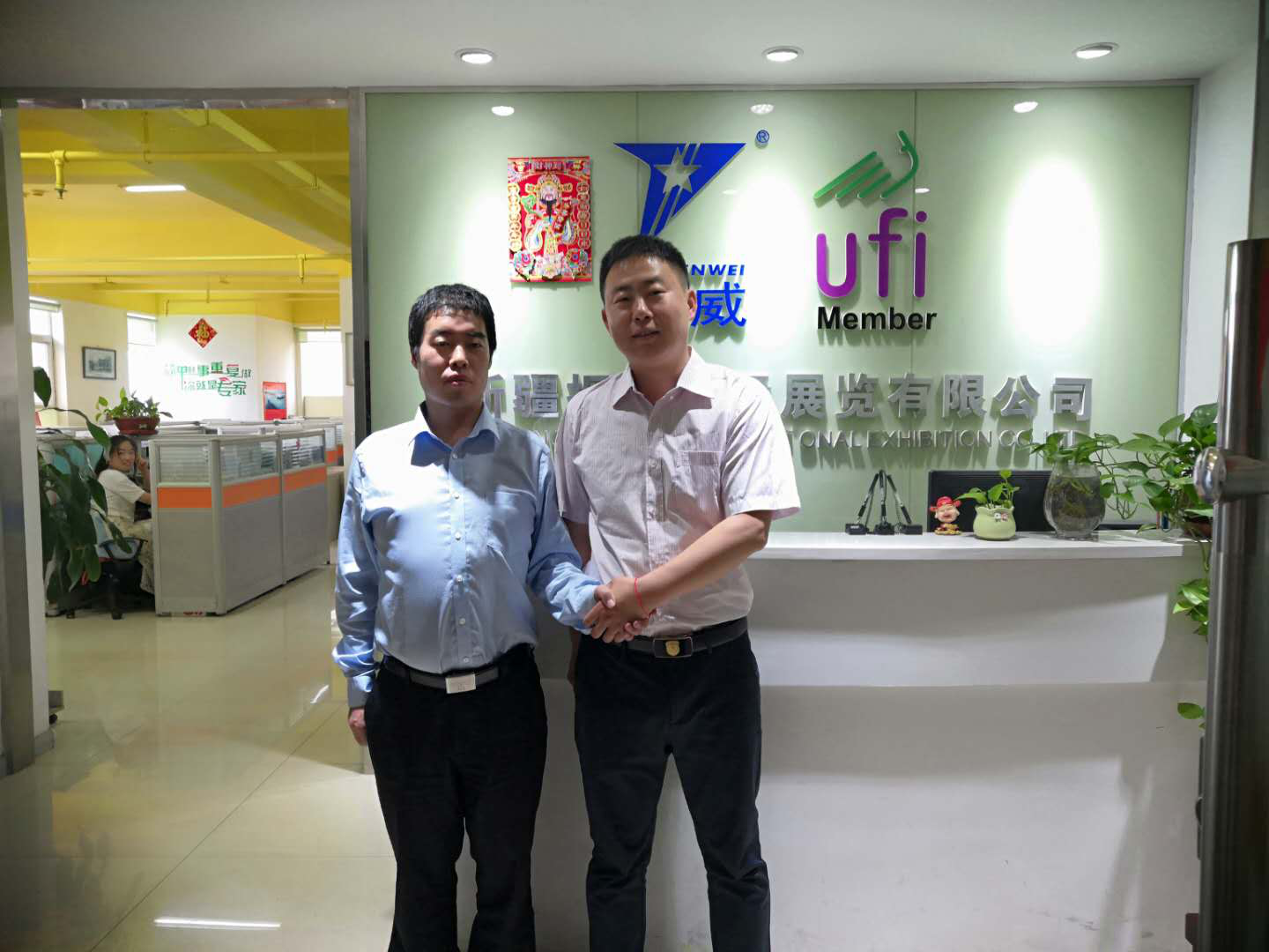 今日,寧夏奔牛新疆區(qū)相關(guān)負(fù)責(zé)人蒞臨組委會新疆振威國際展覽有限公司簽訂合作協(xié)議,并就展會相關(guān)事宜與大會總指揮、秘書處支部書記、主任胡耀光達成一致。