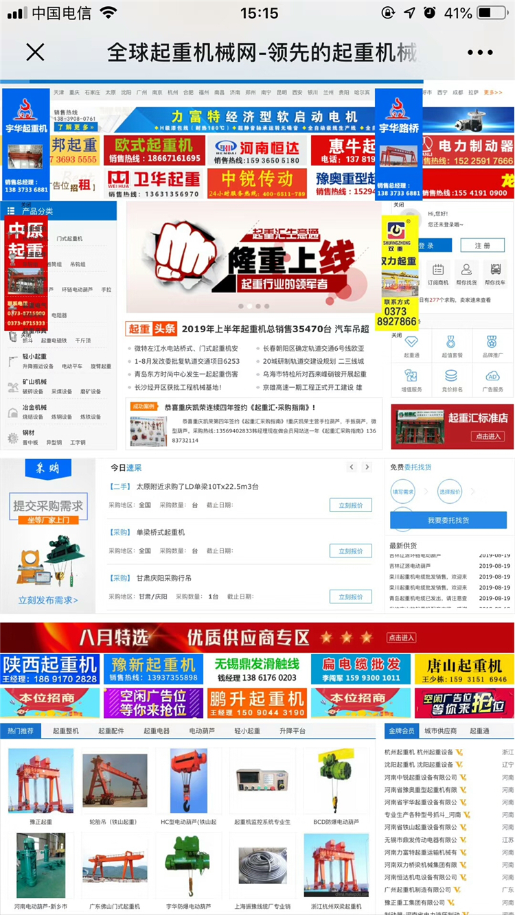 本月活動(dòng)另送首頁“八月特選”專區(qū)廣告位一塊,意味著你在起重行業(yè)的全國網(wǎng)上市場掛了一塊門頭招牌,全天24小時(shí)展示,客戶點(diǎn)擊你的廣告位置即可進(jìn)入你的網(wǎng)上店鋪,增加更多曝光機(jī)會(huì)!參與熱線18903809915