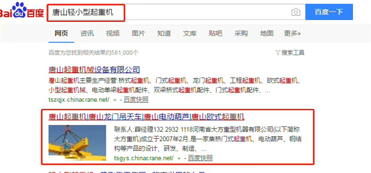 感謝唐山薛總的信任與支持,薛總的網(wǎng)站還沒到期,趁著活動(dòng)提前續(xù)費(fèi),網(wǎng)站搜索:唐山起重機(jī)、唐山天車、唐山電動(dòng)葫蘆、唐山歐式起重機(jī)......等關(guān)鍵詞排名都是首頁,而且點(diǎn)擊不扣費(fèi)的哦!