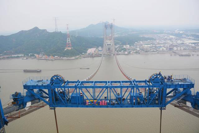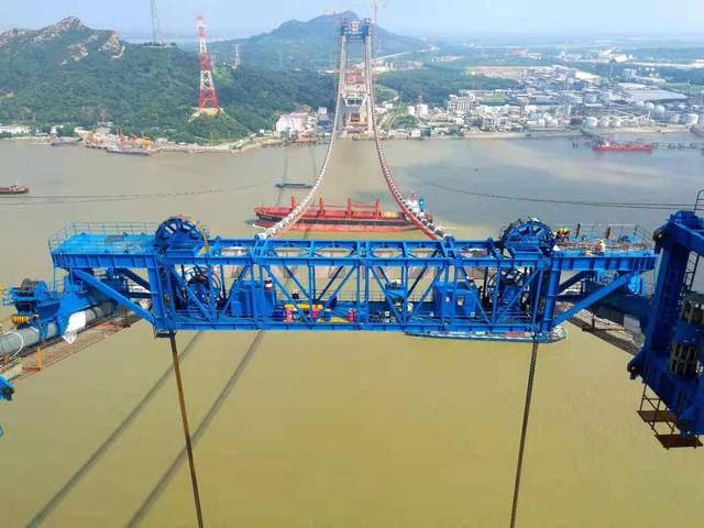 17日,施工現(xiàn)場負責(zé)人告訴記者,纜載起重機主要由主梁、起升系統(tǒng)、液壓系統(tǒng)、電氣控制系統(tǒng)、走行機構(gòu)、吊具、牽引系統(tǒng)等組成。而鎮(zhèn)江五峰山長江大橋纜載吊機,是目前國內(nèi)同類型設(shè)備中起重噸位最大、技術(shù)含量最高的纜載吊機,“額定起重量900噸,相當于吊起600輛小汽車的重量”。