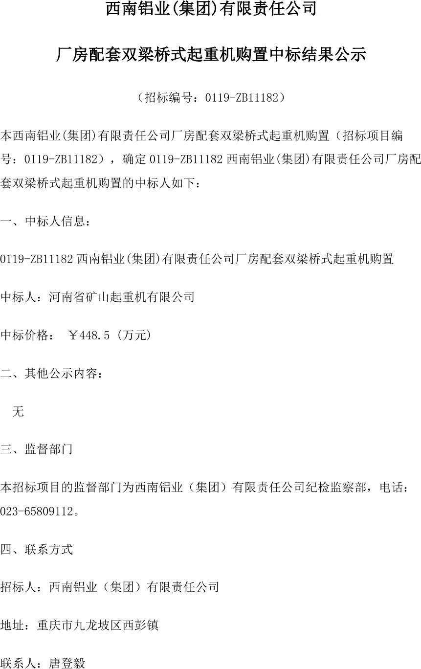 移動(dòng)版:廠房配套雙梁橋式起重機(jī)購(gòu)置中標(biāo)公示