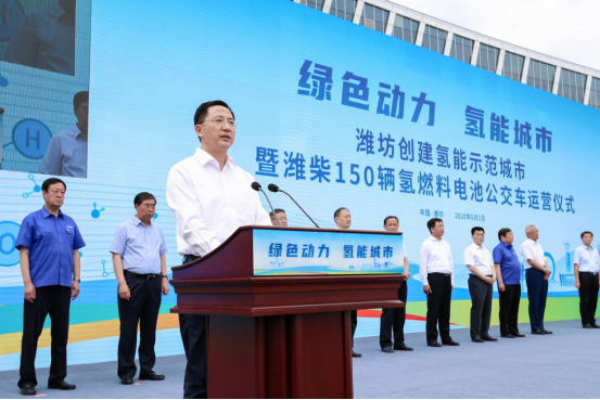 6月1日上午,濰坊創(chuàng)建氫能示范城市暨濰柴150輛氫燃料電池公交車運營儀式舉行,山東省副省長凌文,濰坊市委書記惠新安,濰坊市委副書記、市長田慶盈等省市領導出席活動。這是繼2019年首批投放50輛后,濰柴又一次在濰坊大規(guī)模投放氫燃料電池公交車,為濰坊創(chuàng)建氫能示范城市注入了綠色“新動力”。
