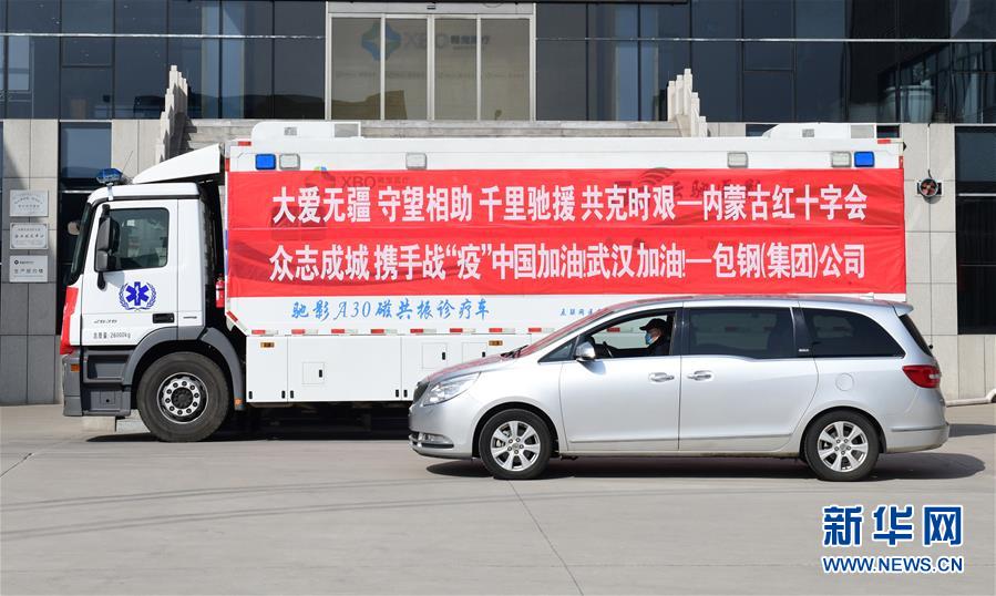圖今年3月,包鋼集團向武漢抗疫一線捐贈一臺馳影A30磁共振診療車。為3月6日磁共振診療車從內(nèi)蒙古包頭出發(fā)前往武漢。新華社發(fā)(鄭子琦 攝)