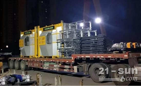 中聯(lián)重科發(fā)貨坪凌晨仍在裝車發(fā)貨