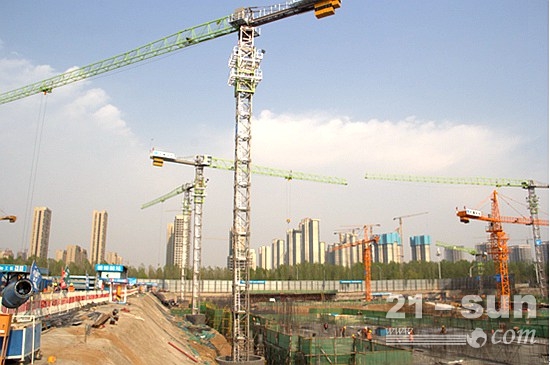 中聯(lián)重科W新品塔機(jī)在某工地施工