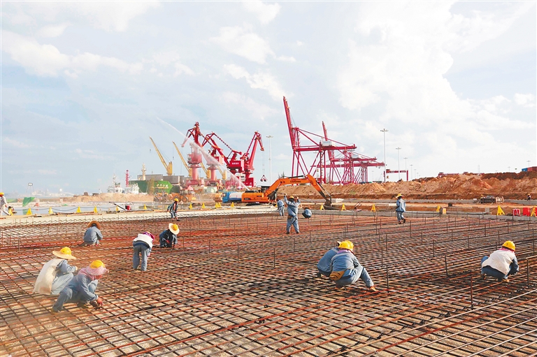 日前,海南自貿(mào)港洋浦經(jīng)濟(jì)開(kāi)發(fā)區(qū)內(nèi)的海南煉化年產(chǎn)100萬(wàn)噸乙烯項(xiàng)目配套碼頭沉箱預(yù)制場(chǎng),現(xiàn)場(chǎng)施工火熱。該預(yù)制場(chǎng)于5月動(dòng)工,目前正進(jìn)行基礎(chǔ)設(shè)施施工,下月投入使用后將為項(xiàng)目建設(shè)提供有力支持。海南日?qǐng)?bào)記者 陳元才 攝