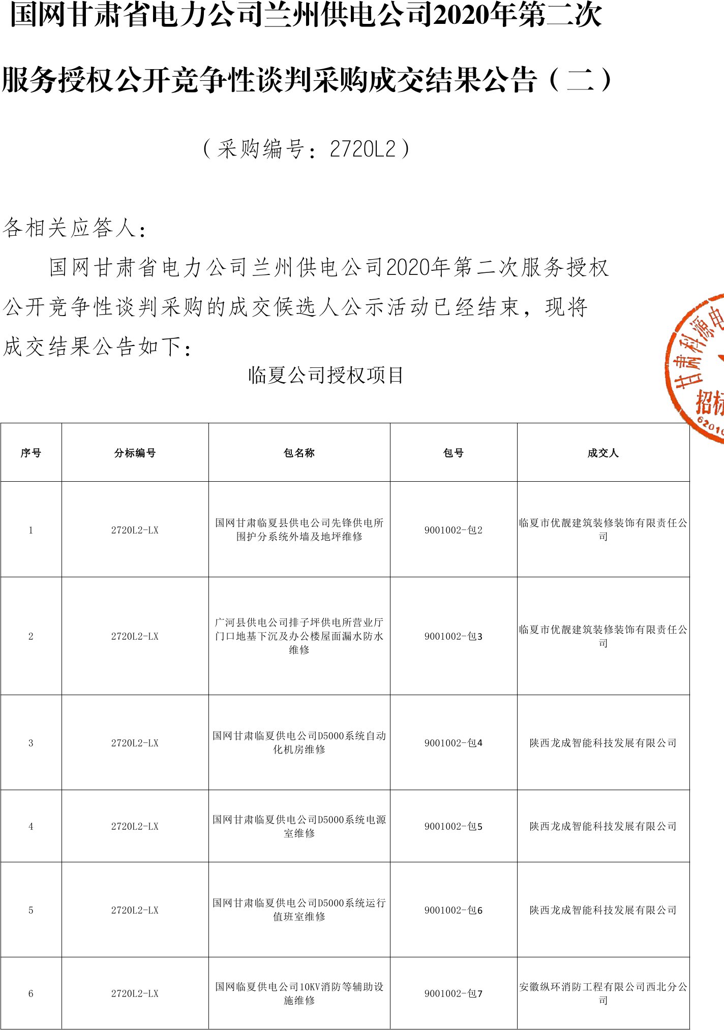 移動版:國網(wǎng)甘肅省電力公司蘭州供電公司 2020 年第二次服務授權公開競爭性談判采購成交結(jié)果公告(二)變更