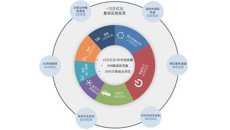 我們預(yù)計(jì)中國(guó)僅在氫能、電動(dòng)汽車、可再生能源、跨區(qū)域輸電、高鐵和城際交通、5G等新能源相關(guān)領(lǐng)域的基礎(chǔ)設(shè)施投資將達(dá)到70萬(wàn)億。短期來(lái)看,由于經(jīng)濟(jì)下行壓力持續(xù)存在,市場(chǎng)主體負(fù)債率普遍較高,國(guó)際金融風(fēng)險(xiǎn)和不確定性增加的大背景下,籌集可用于基礎(chǔ)設(shè)施和處在產(chǎn)業(yè)發(fā)展早期領(lǐng)域的資金將面臨一定挑戰(zhàn)。但從長(zhǎng)期來(lái)看,隨著國(guó)家對(duì)相關(guān)領(lǐng)域扶持力度持續(xù)加大以及全球綠色復(fù)蘇政策的落地實(shí)施,零碳能源資產(chǎn)將迎來(lái)持續(xù)升溫的投資。