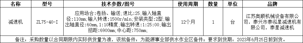 減速機中標公告