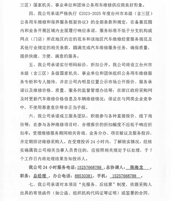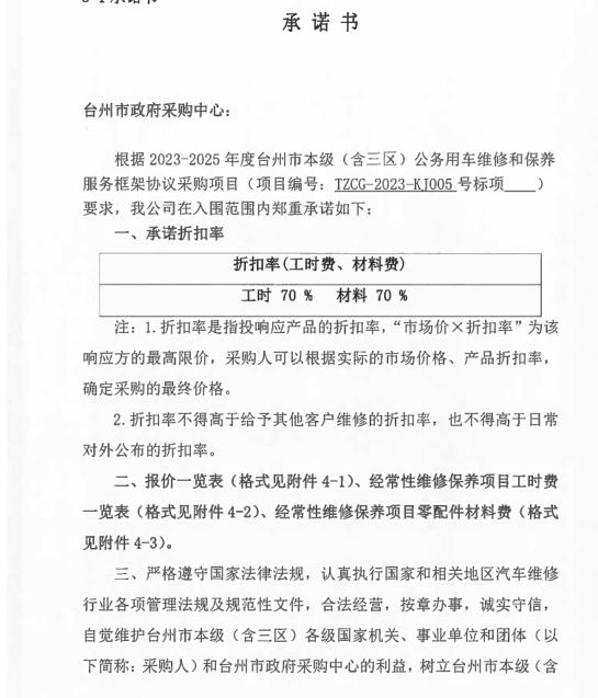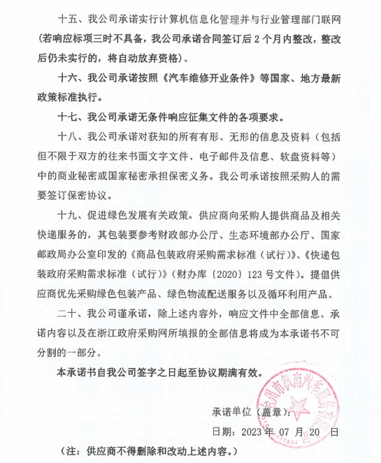 一、二類維修供應(yīng)商(綜合修理類) | 臺州市楓南汽車服務(wù)有限公司一、二類維修供應(yīng)商(綜合修理類) | 承諾書: