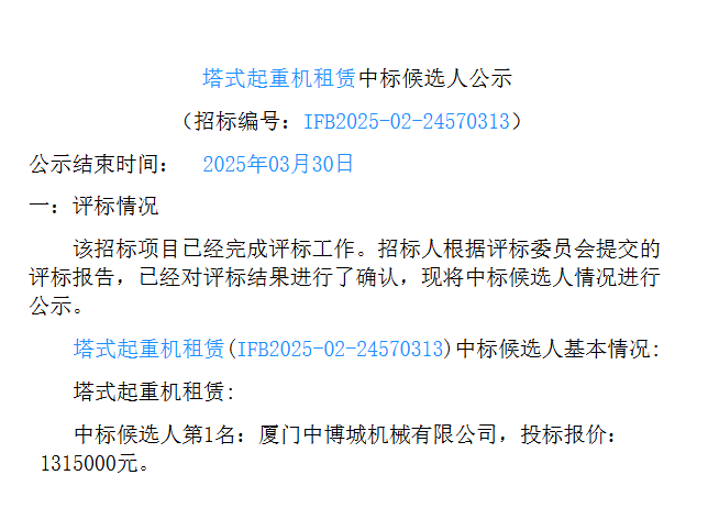 移動版:塔式起重機租賃中標候選人公示